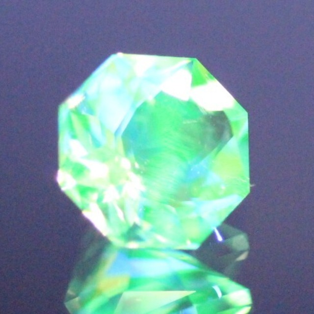 ハイアライトオパール 0.311ct. 4.65×4.58×3.35 ハンガリー産 オクタゴン・ZBカット ピアッちゃん作品 日独鑑別書・産地証明付き 数少ないハンガリー産のハイアライトオパールです。 多様な種類が存在するオパールの中で、最も希少性が高いとも言われている「ハイアライトオパール」。 シーンによって表情を変える 瑞々しいグリーンの光をお楽しみください。 流紋状のゆらゆらした独特のインクルージョンもお楽しみ頂けます。 とにかく透明度が高く、眩しい程しっかりと蛍光するハイアライトオパールを、オクタゴンカットとGemTreeJapanの独自カットであるZBカットが施された比較的お手頃な逸品です。 UVライトを遠くから弱くあてることで、カットと蛍光を両方お楽しみいただけます♪ 【産地】 メキシコ ・ハンガリー 【和名】 玉滴石 【モース硬度】 5-6.5 【光沢】 ガラス光沢-樹脂光沢 【屈折率】 1.44 【比重】 2-2.25 #GemTreeJapan #オパール #ハイアライトオパール