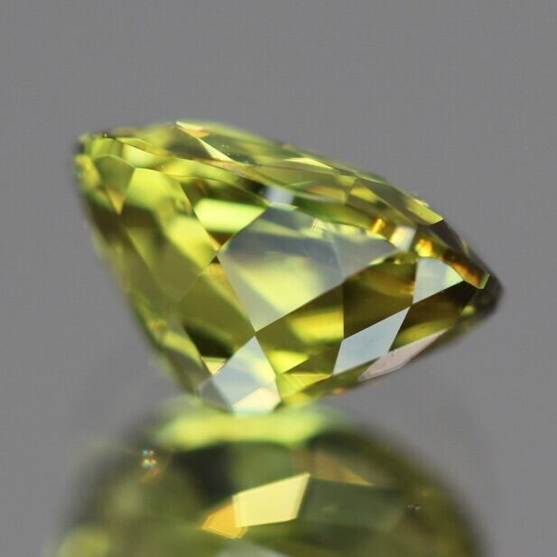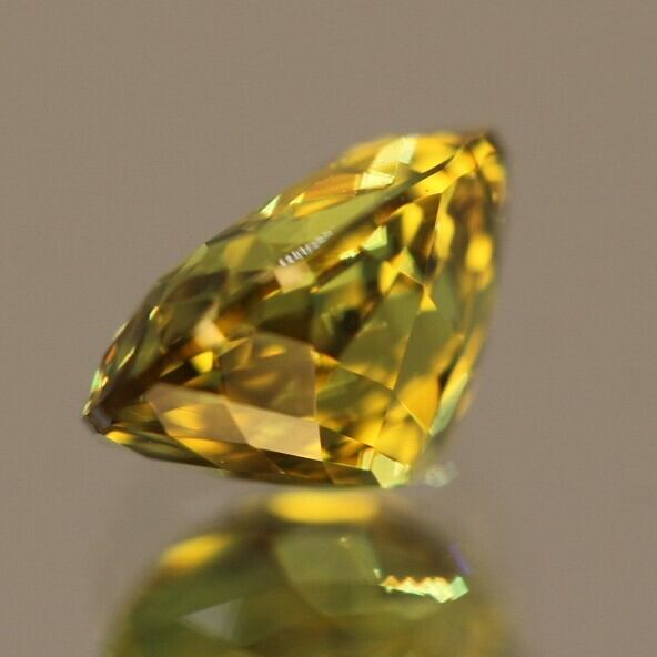 こちらは通常イエローですが、肉眼でグリーンは見えないものの、白色暖色ともに光が当たるとグリーンが出てくるピースで、スフェーンのような煌めきをあわせ持つサファイアです。