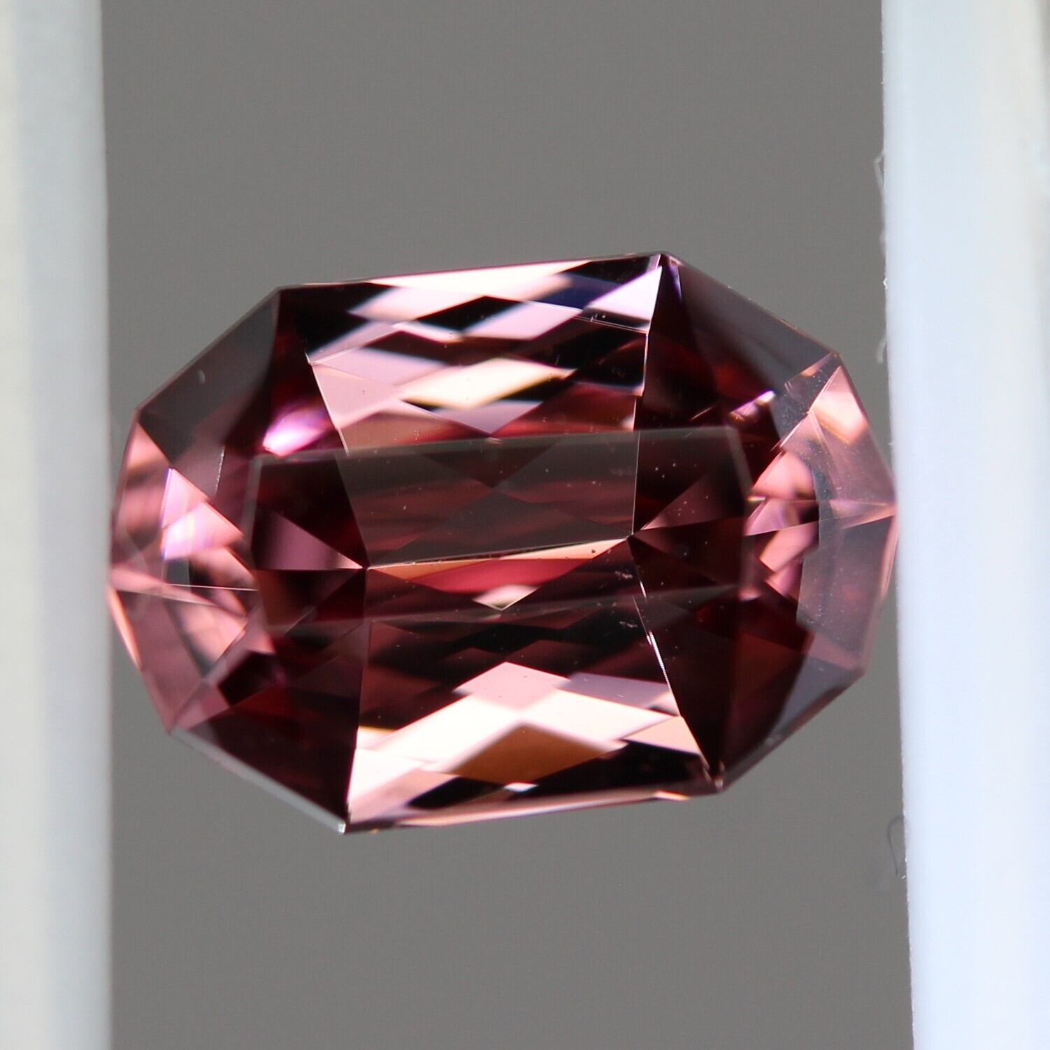 ジルコンのとてもユニークな特徴として、複屈折(二重屈折)があります。これは、ジルコンの内部を光が通るとき、二つの光線に分かれることです。結果として、バックファセットが二重に見え、さらに厚みが増して見えることになります。