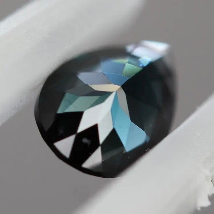 希少なミャンマー産のブルーグリーン(ブルー4:グリーン6)程の割合で濃色ピーコックカラーのスピネルです。
